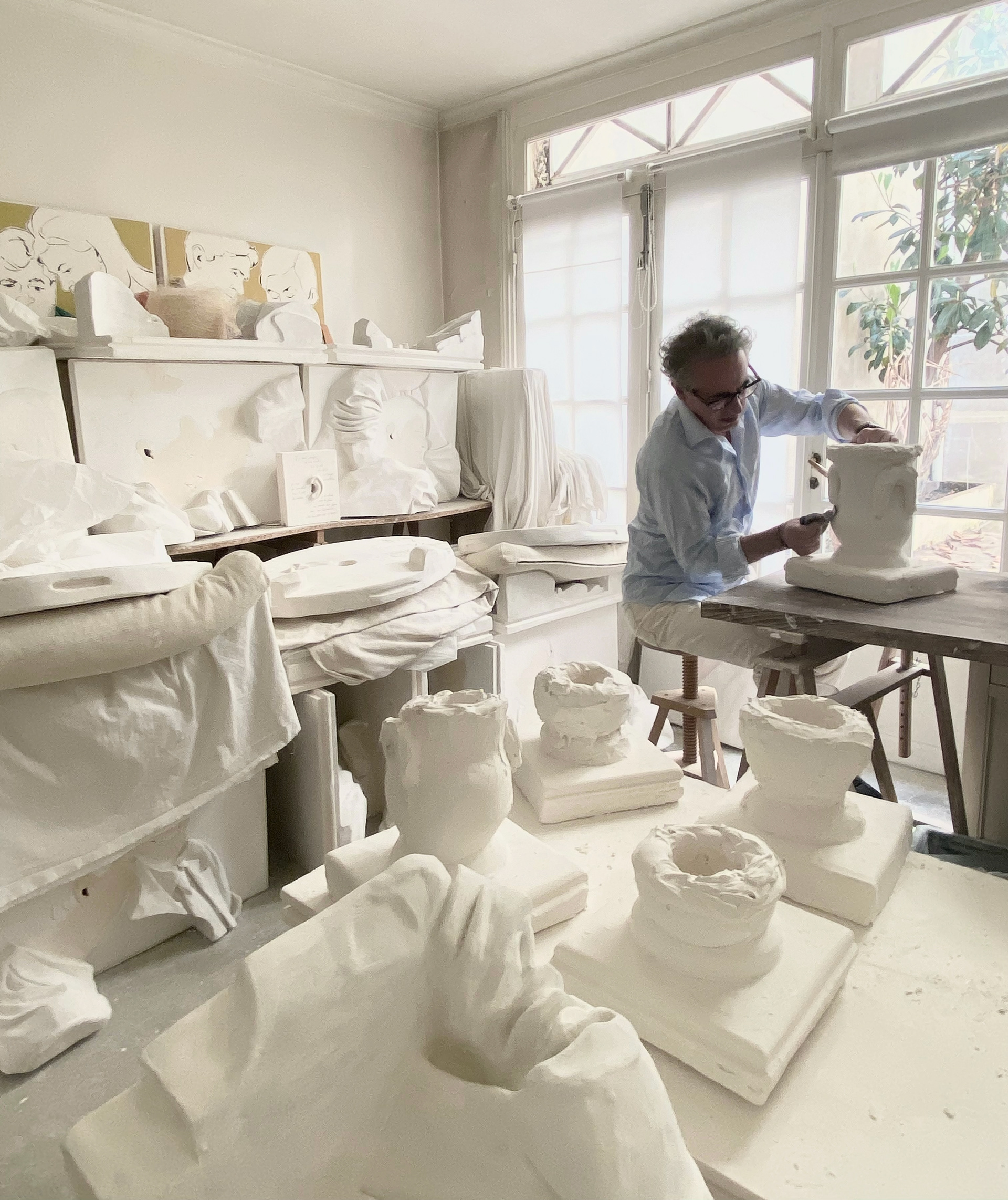« Je construis mes vases comme un géologue observerait la terre : couche après couche. Le plâtre s’accumule en strates irrégulières qui forment une mémoire du geste et du temps. »